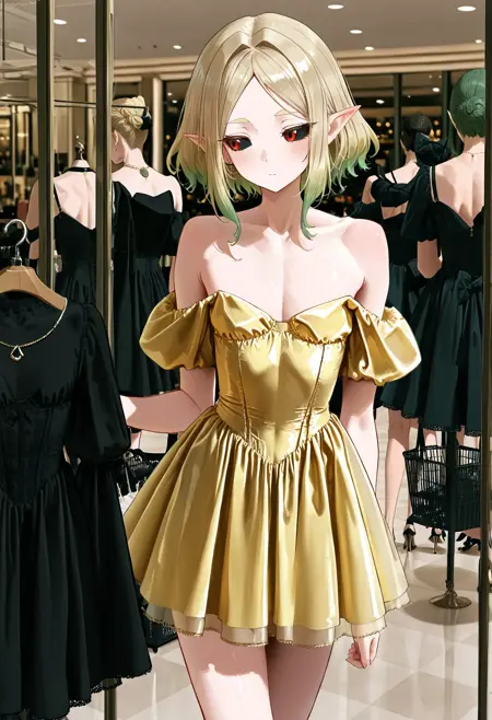 触发词:josieandmeowmmingdress,短裙,荷叶边裙,