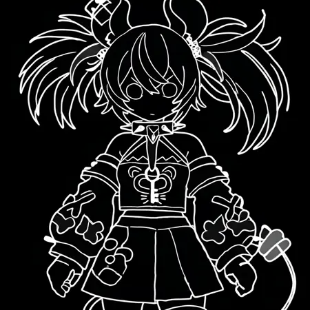 我打算制作一个LoRA,使所有内容为黑色,眼睛留白,仅保留白色线稿,并将白色部分上色至配饰的某些区域,如“外套、纽扣、面具、花卉图案等”