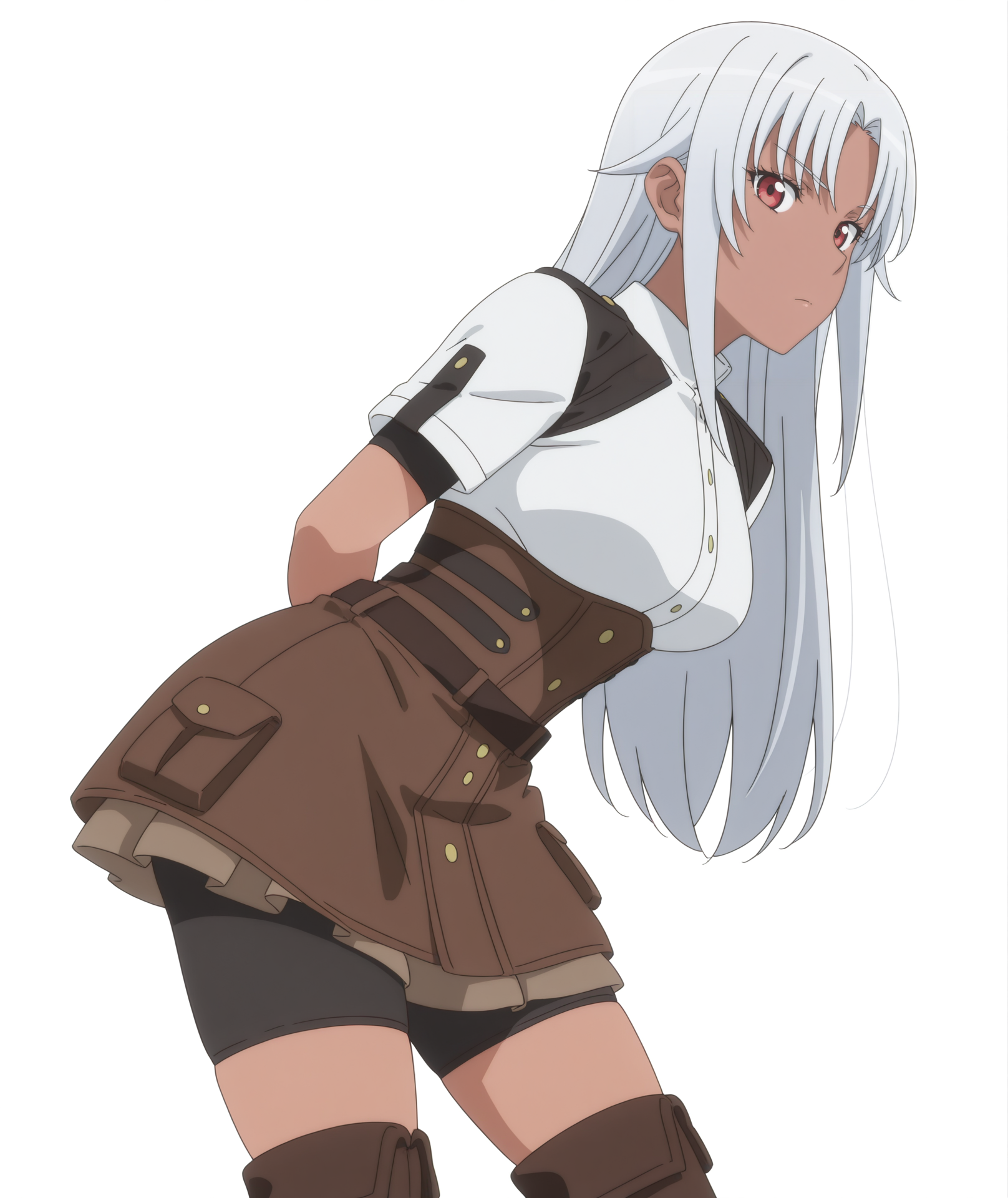スカート、短い袖、スカートの下のバイクショーツ、バイクショーツ、コルセット、茶色のスカート、ショートパンツ、