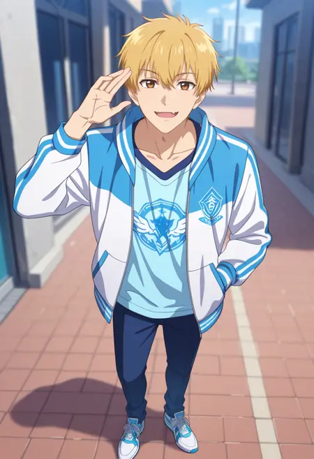 huang shaotian, blue eyes, blonde hair, short hair