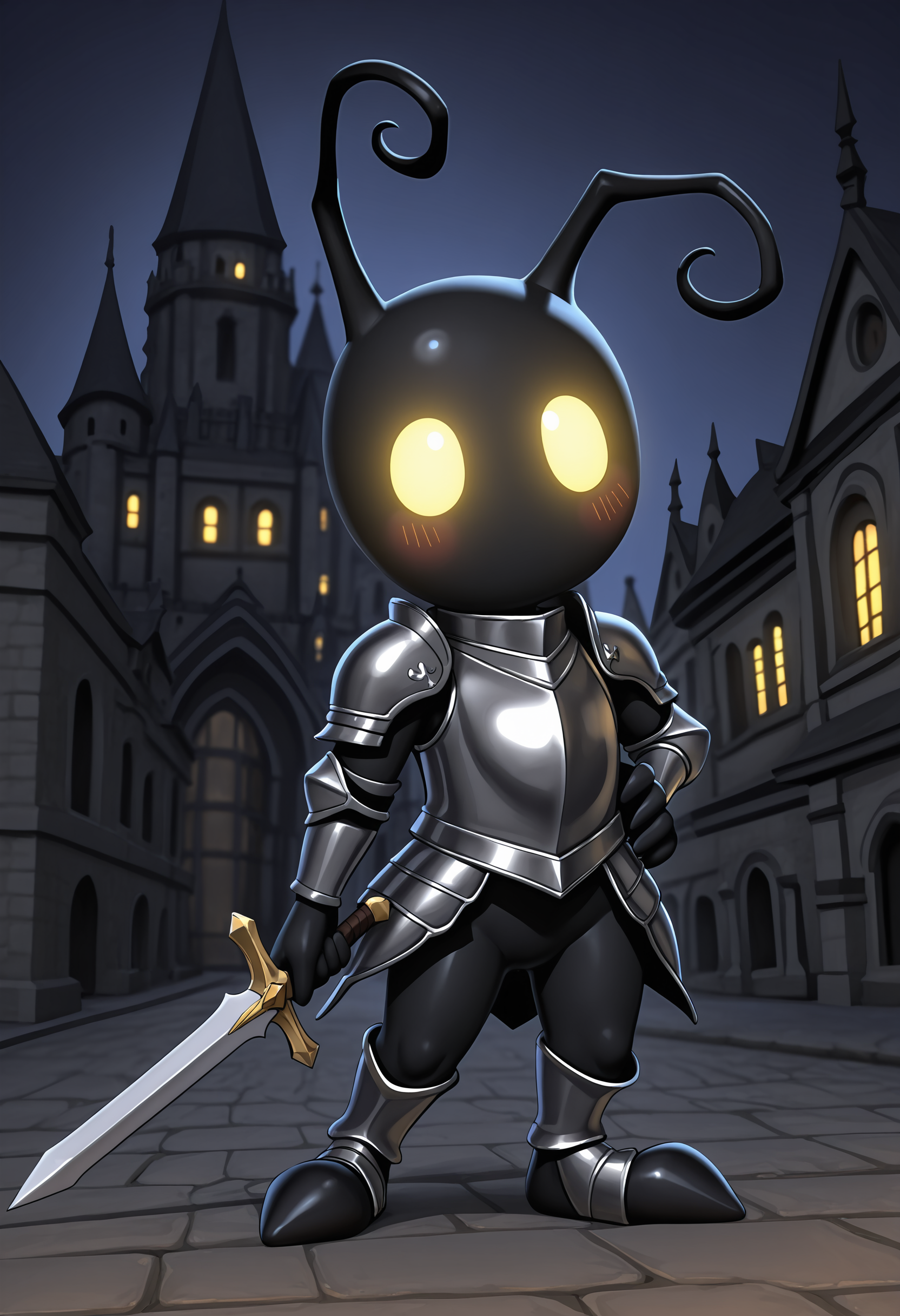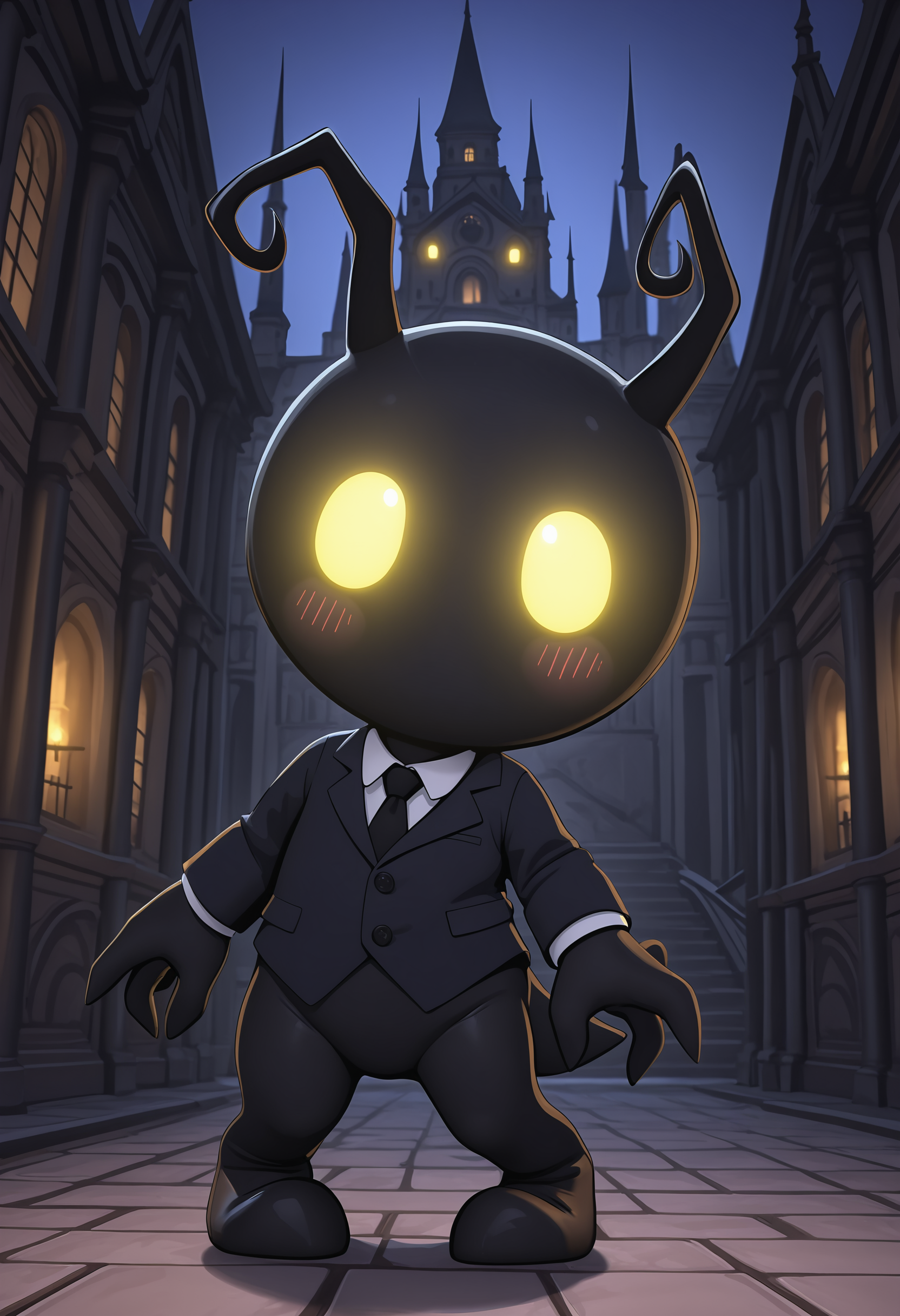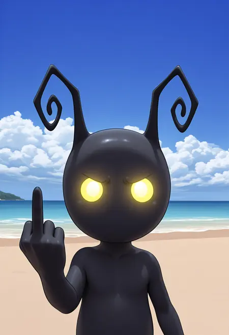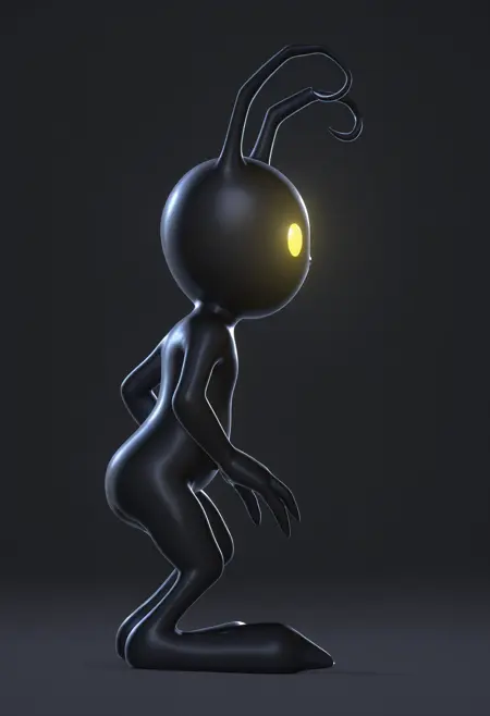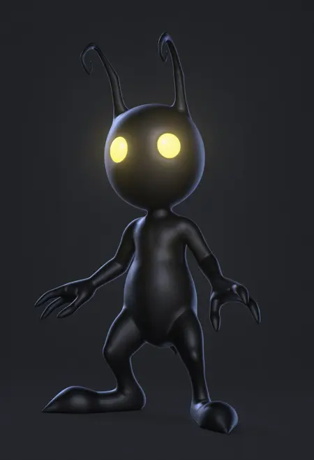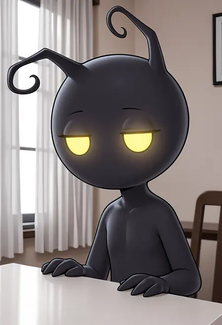 sh4ilf, 无嘴巴, 有色皮肤, 黑色皮肤, 触角, 发光的眼睛, 黄色眼睛