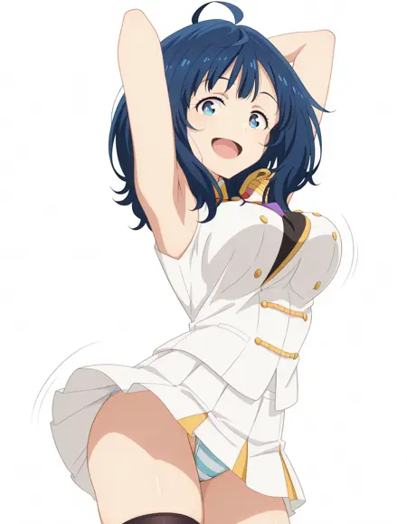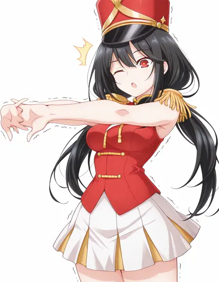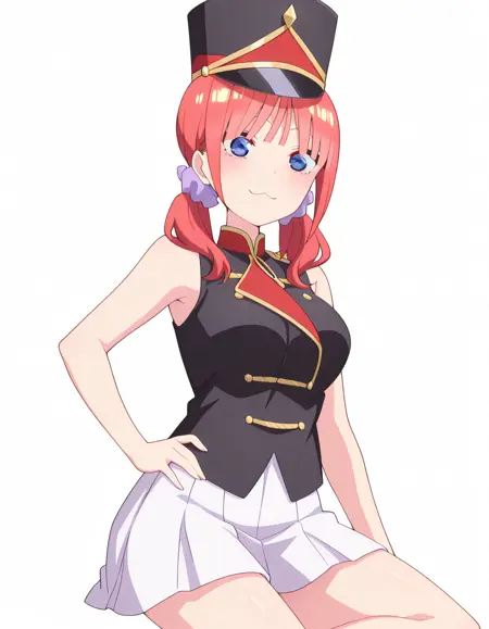 lora:band-uniform-illustriousxl-lora-nochekaiser:1, 乐队制服,行进乐队,筒形帽,肩章,无袖,裙子,白色裙子,迷你裙