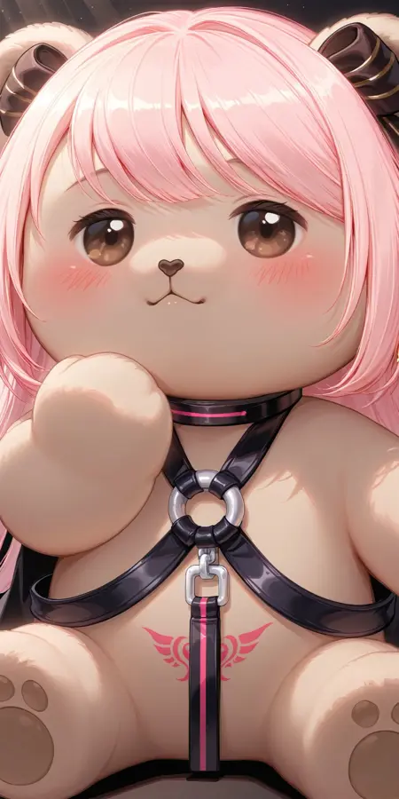 no humans, Teddy-Main,flat eyes,teddy bear,flat eyes,revealing clothes,tattoo,hair bow,