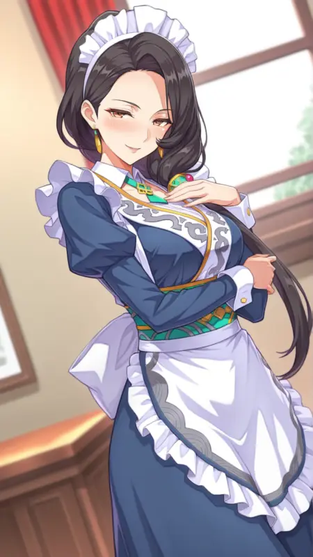Appearance:mature female ,black hair, long hair, brown eyes,hair ornament,