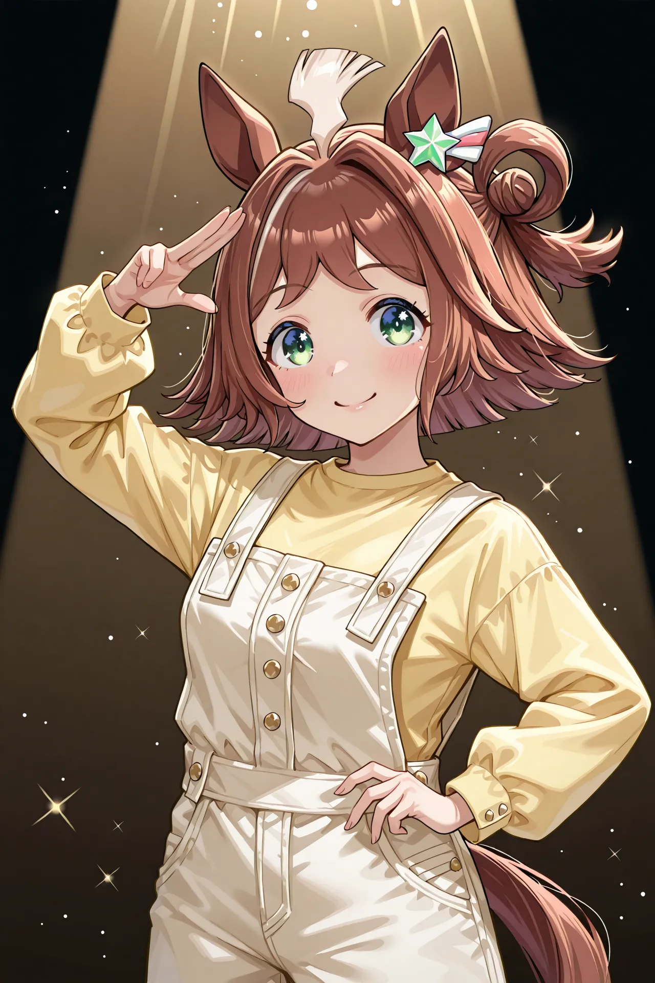 캐주얼, 별 장식, 노란 셔츠, 오버올, 흰 오버올, 긴 소매,