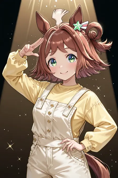 말 귀, 말 꼬리, 말 소녀, 다색 머리카락, 흰 머리카락, 갈색 머리카락, 녹색 눈, 단발, 아호게,