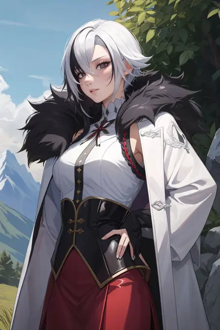 arlecchino, 眼睛之间的头发, 黑发, 白发, 短发, 外套, 毛皮镶边, 毛皮镶边外套, (X形眼睛, 符号形状眼睛, 十字眼)