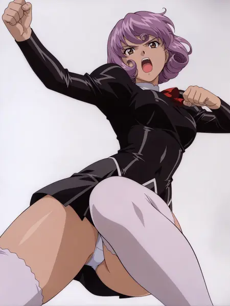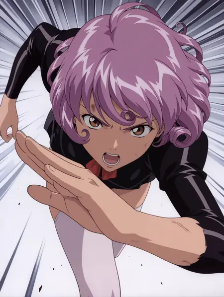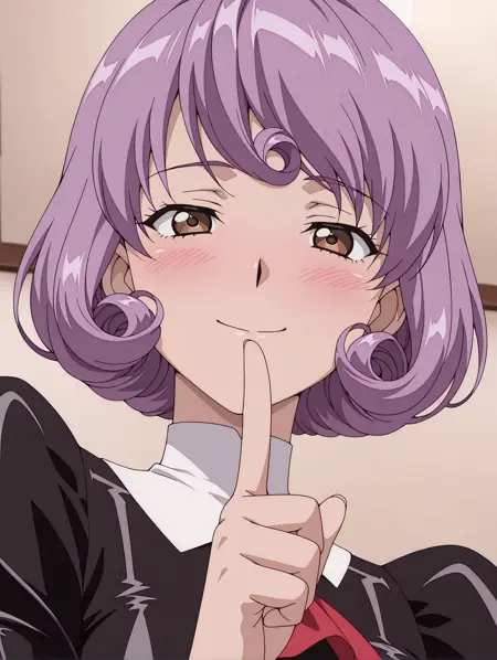 触发词:d_leader、紫色头发、短发、卷发、棕色眼睛