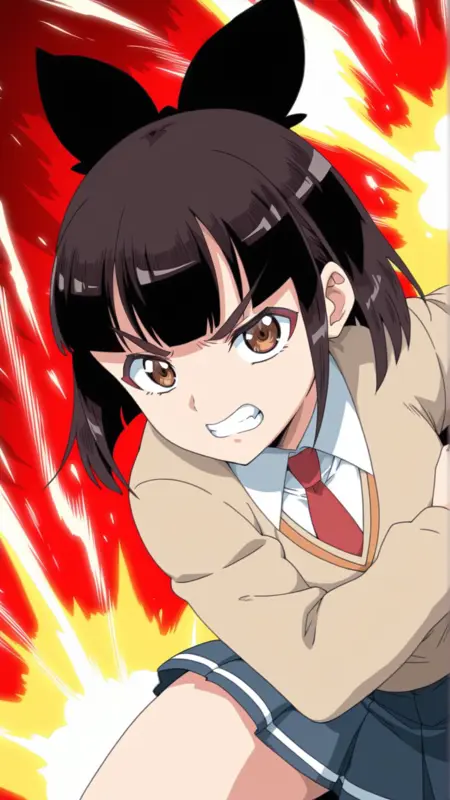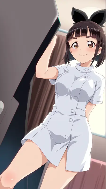nikaidou_tenko,black hair, brown hair,hair bow,short hair,