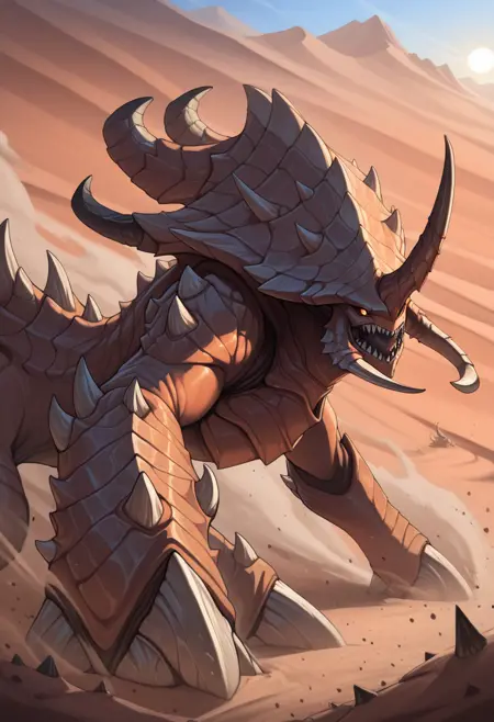 若要让巨像四足站立,可尝试添加“animal”标签。但这样可能导致刀刃手臂出现问题。“on all fours”标签也可能有帮助,但会使巨像过于人形,从而破坏整体效果。