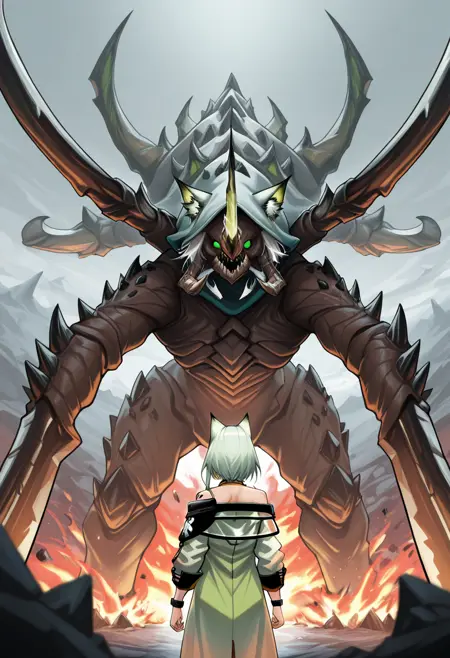 此LoRA效果不佳,它在显示非巨像生物时存在诸多问题。我耗费了大量尝试才在预览中获得甘雨像抱宝可梦一样抱着巨像的图像。此外,LoRA 几乎从不正确显示巨像的刀刃手臂。我曾尝试通过添加“怪物动物”标签或移除描述生物归属的标签来修复此问题,但情况反而更糟。因此,将发布第一版。