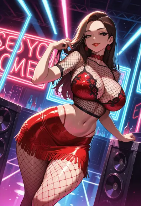 /color/ lace flowers outfit (choker, fishnet shirt/top/bra, fishnet leggings, fishnet skirt, thong)