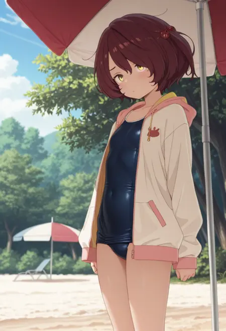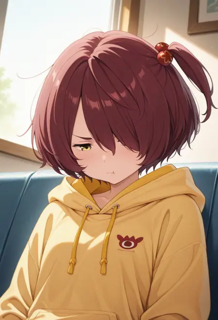 트리거 단어: komari chika, 단발, 붉은 갈색 머리, 노란 눈