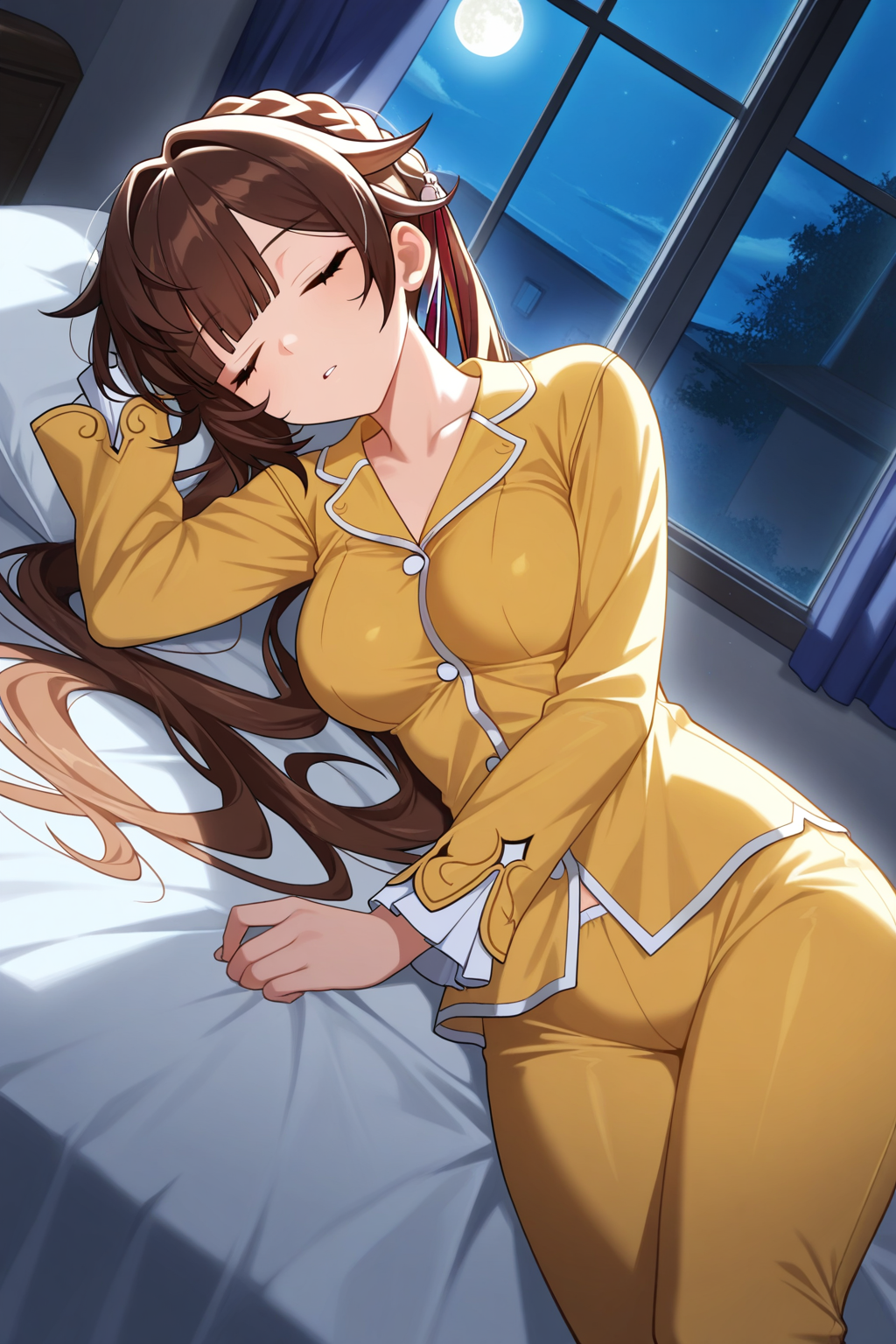 プロンプト:masterpiece, best quality, amazing quality, fine details, Sushang, solo, breasts, medium breasts, long hair, brown hair, braid, brown eyes,