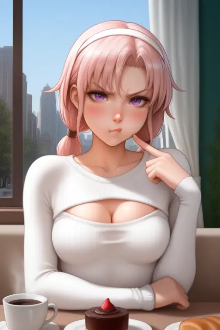 kf4liesel, 1girl, pink hair, purple eyes, low twintails