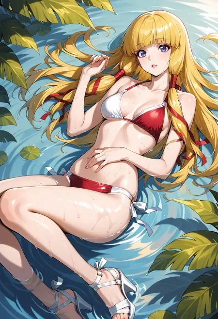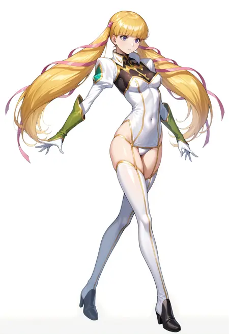 아우터 3: 1소녀, 금발, 파란 눈, 보라색 눈, 허벅지 긴 양말, 긴 머리, 장갑, 허벅지 부츠, 더블 테일, 부츠, 앞머리, 가슴, 레오타드, 흰 허벅지 긴 양말, 둔한 앞머리, 중간 크기 가슴, 머리 리본, 리본, 흰 장갑, 매우 긴 머리, 파일럿 복, 흰 신발, 헤드셋, 단일 테일, 헬멧, 하이힐, 바디수트, 흰 레오타드