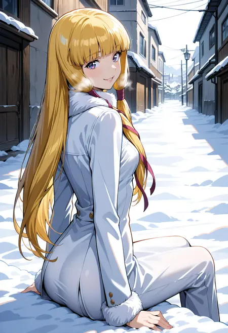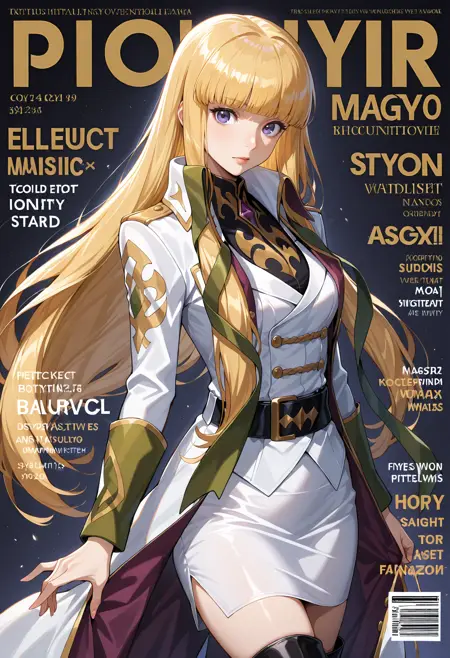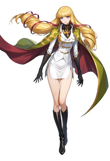 衣装1: 1人の女の子、金髪、青い目、紫の目、長い髪、ブーツ、膝上ブーツ、ユニフォーム、スカート、ストレートの前髪、軍服、軍事、長袖、前髪、黒い靴、ペンシルスカート、ベルト、非常に長い髪、サイドロックス、コート、リボン、スカーフ、ドレス、ジャケット、アスコット、白いスカート