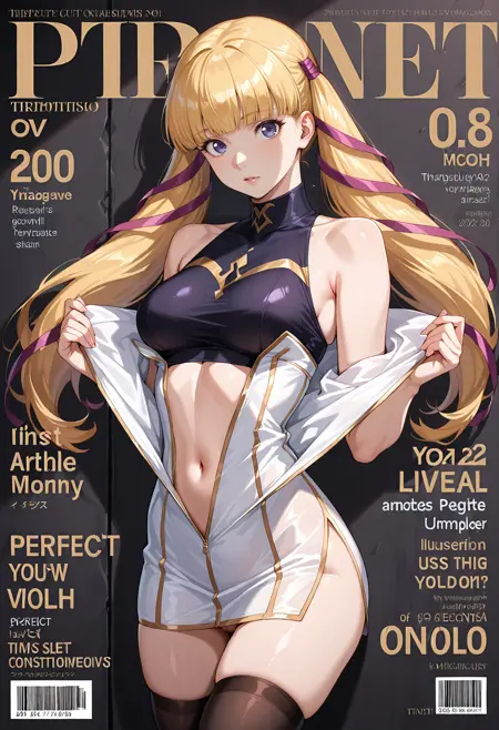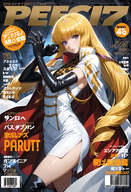 아우터 1: 1소녀, 금발, 파란 눈, 보라색 눈, 긴 머리, 부츠, 무릎 부츠, 유니폼, 치마, 둔한 앞머리, 군복, 군사, 긴 소매, 앞머리, 검은 신발, 연필 치마, 벨트, 매우 긴 머리, 측면 머리카락, 코트, 리본, 스카프, 드레스, 재킷, 애스콧, 흰 치마