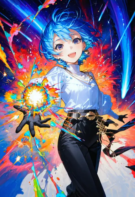 多色背景,双手合十,火花 / 能量球,颜料溅洒