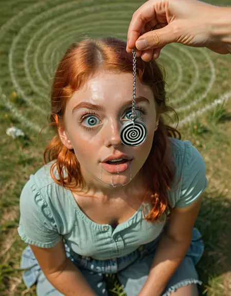 Prompts: hypnosis, hand, holding, chain, spirals, pocket watch, spiral eyes,