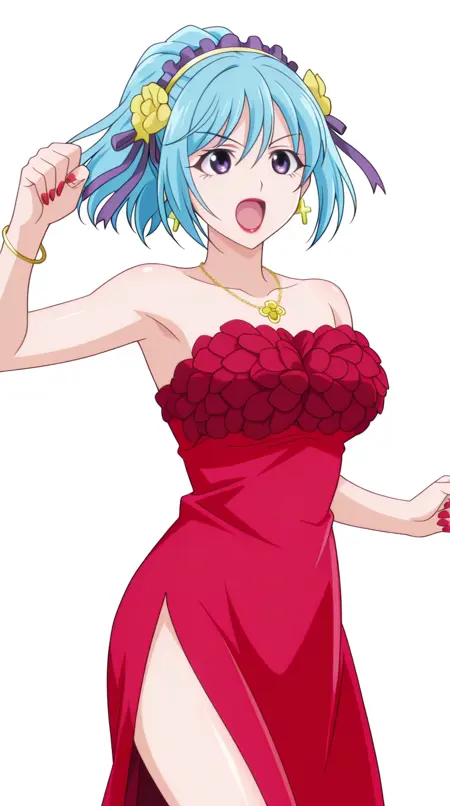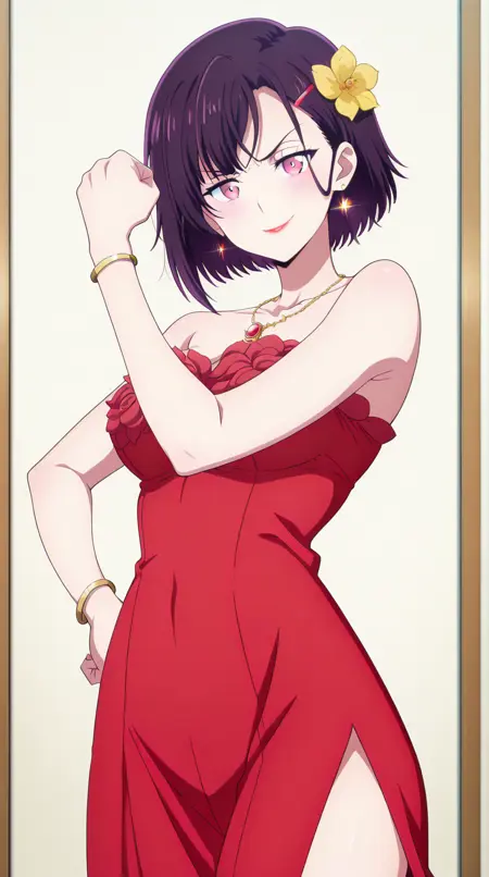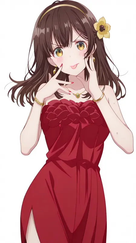 lora:yor-briar-cosplay-illustriousxl-lora-nochekaiser:1, yor briar cosplay, yor briar (cosplay), 肩出し, ブラックドレス, ブラックグローブ, 胸元, ドレス, ピアス, グローブ, ゴールドピアス, 髪飾り, ヘアバンド, ジュエリー, 肩出し, 锁骨, フィンガーレスグローブ, レッグハイ, ブラックレッグハイ,