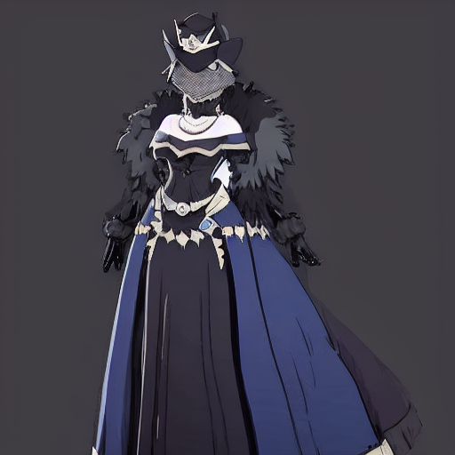 gremory,戴面纱的帽子,毛皮镶边,项圈,项链,胸部,黑色长裙,手套,叠加蓝色裙子配金色链条腰带