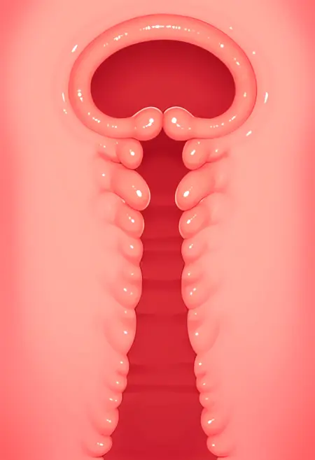 음경이 없는 질 단면도를 재현합니다.