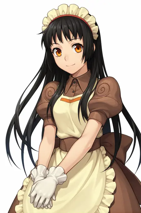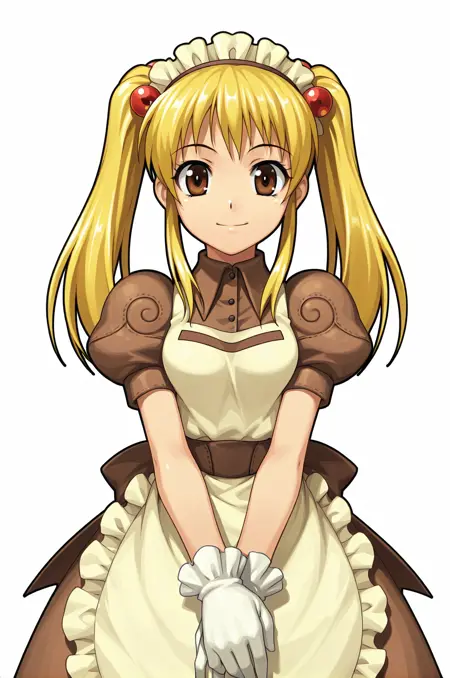 kafra, 앞치마, 장갑, 메이드 헤드어스, 짧은 소매, 풍선 소매, 갈색 드레스, 허리 앞치마,