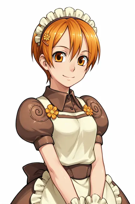 roxie, 주황색 머리카락, 주황색 눈, 꽃 머리핀, 매우 짧은 머리,