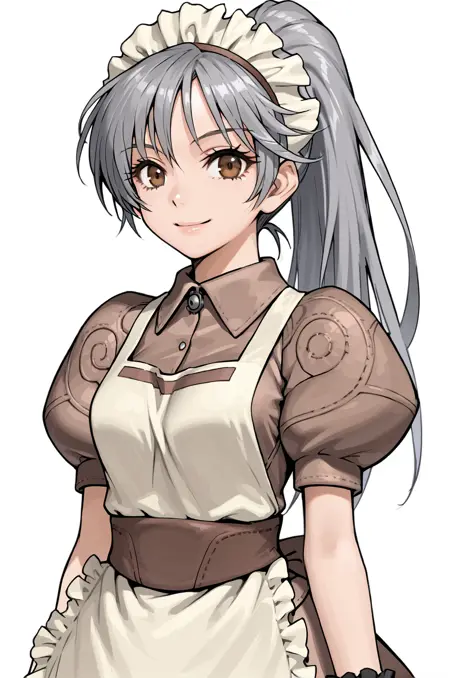 blossom, brown eyes, long hair, ponytail, grey hair, bangs,