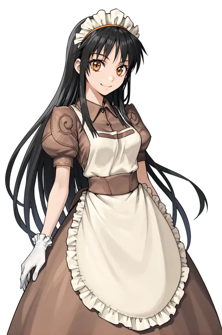 jasmine, black hair, brown eyes, orange eyes, very long hair, bangs,