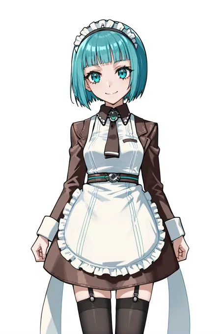 alty, aqua hair, aqua eyes, short hair, bob cut, blunt bangs,