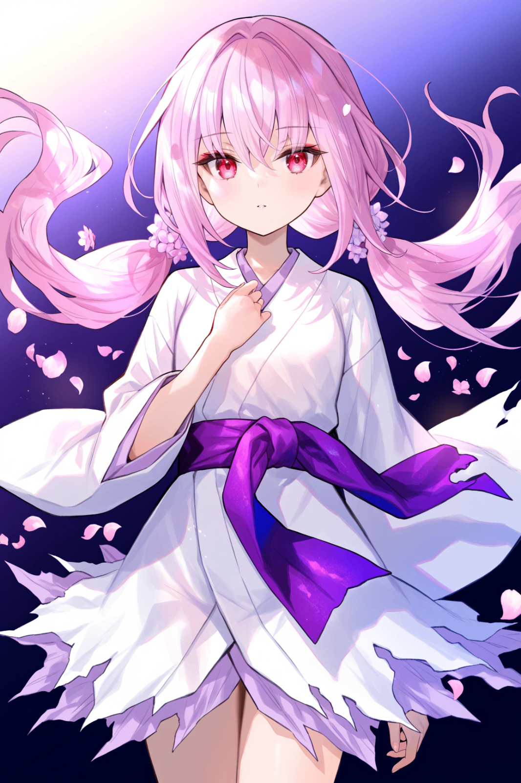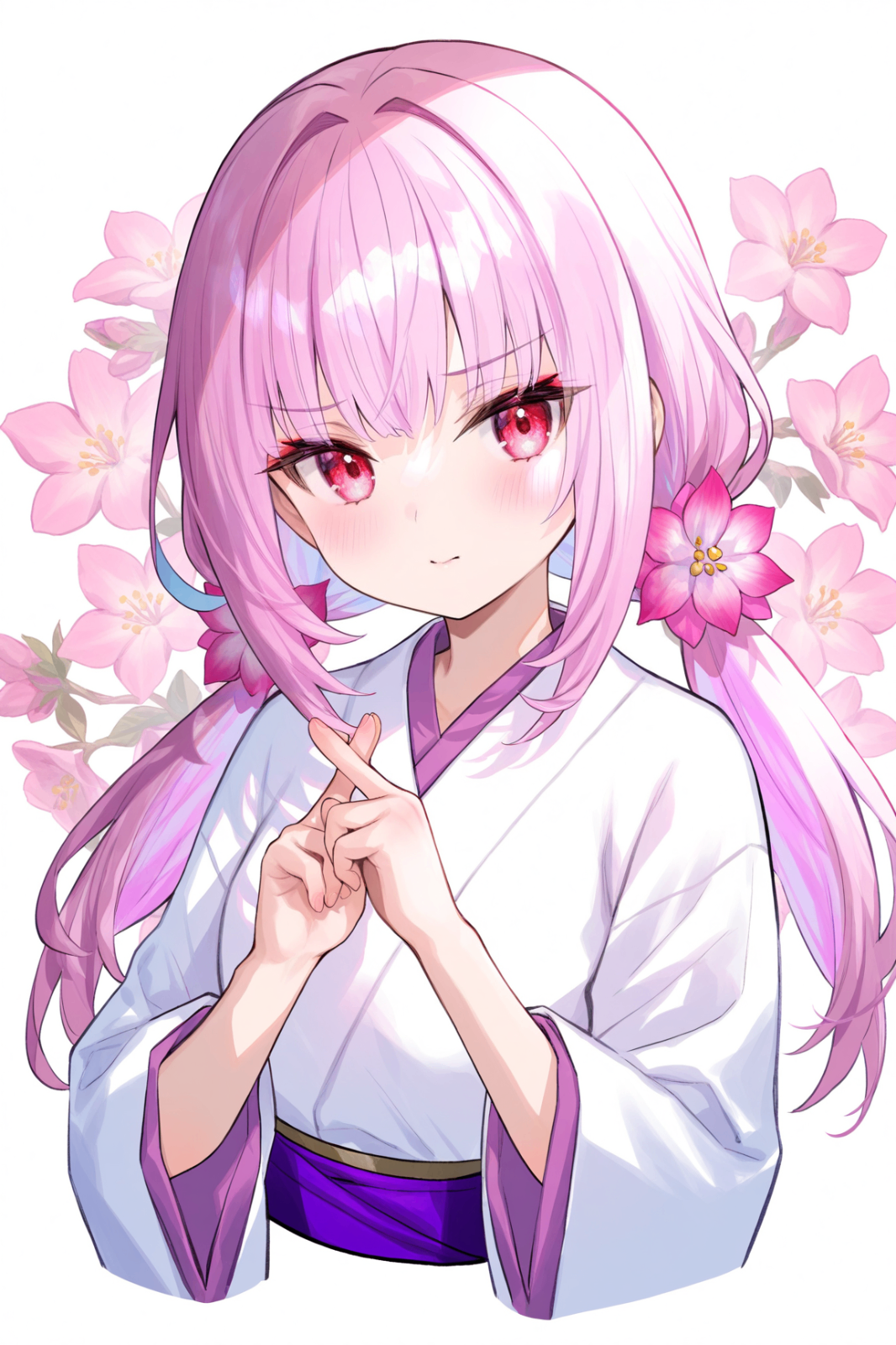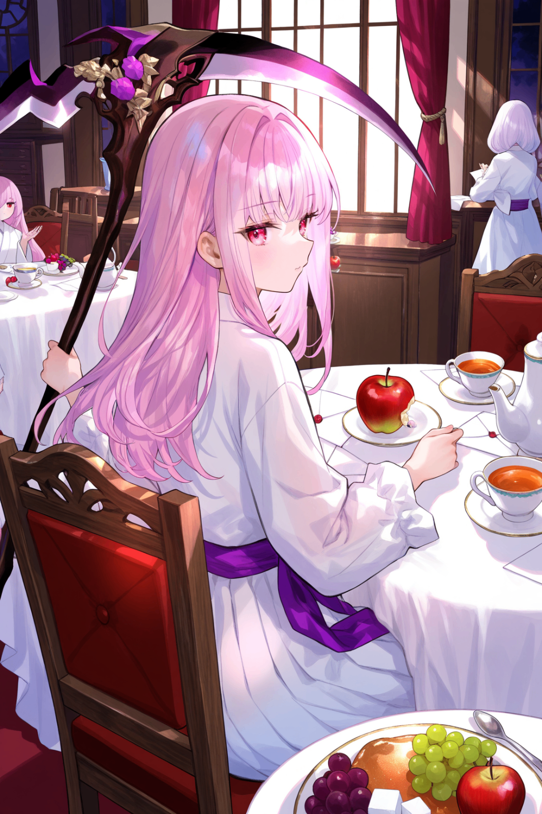 Tags (character): ghost reaper & winter cherries, long hair, twintails, red eyes, pink hair, low twintails