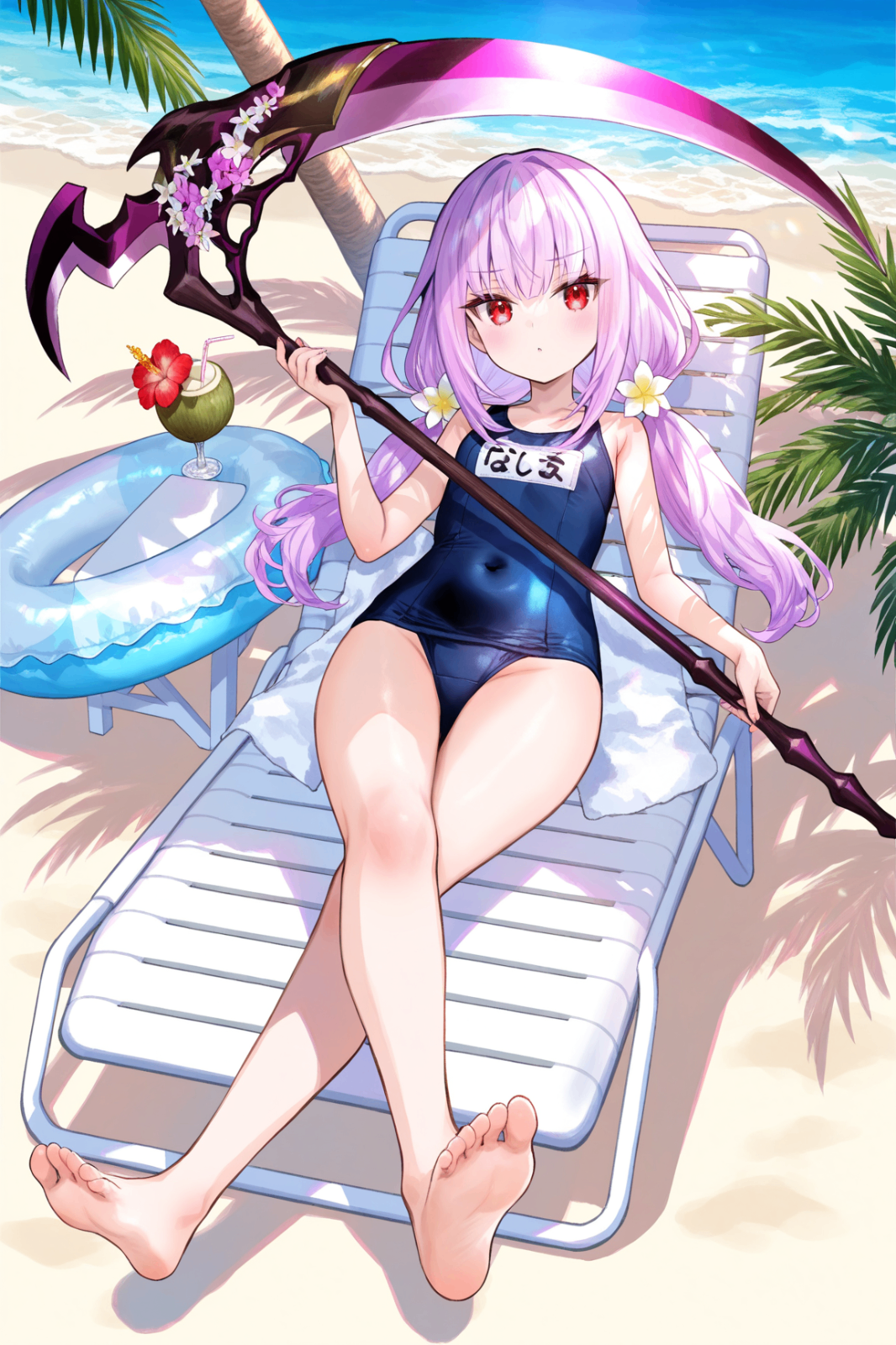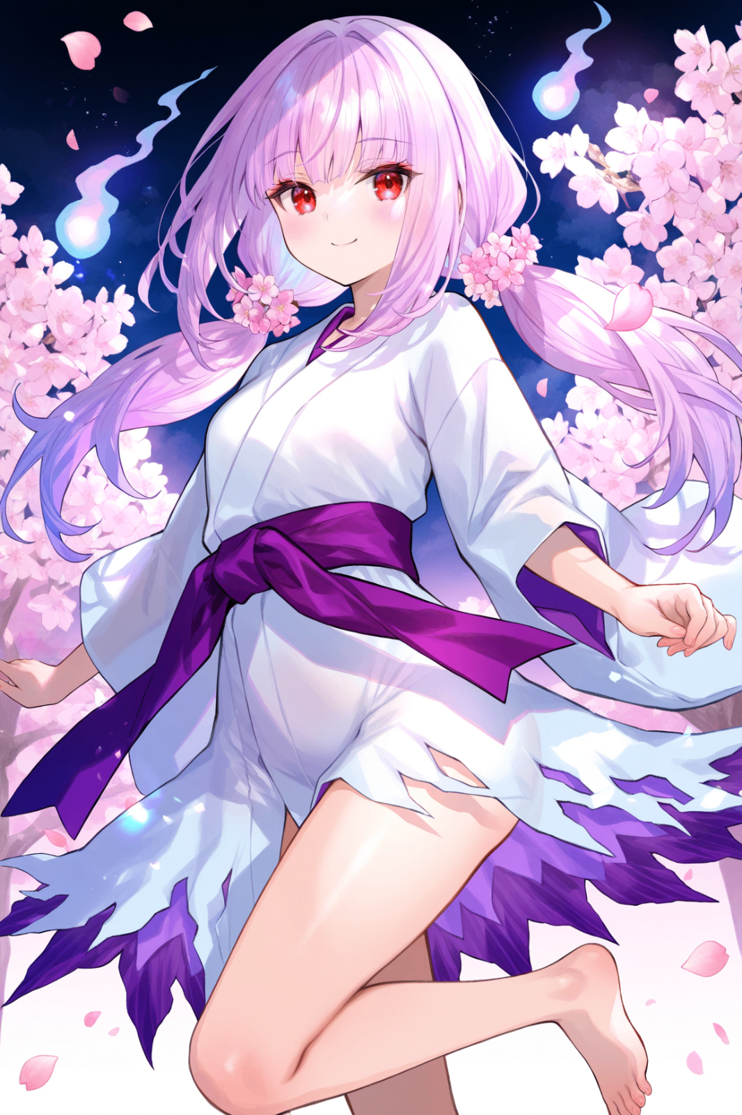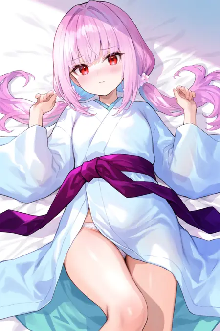 Tags (character): ghost reaper & winter cherries, long hair, twintails, red eyes, pink hair, low twintails