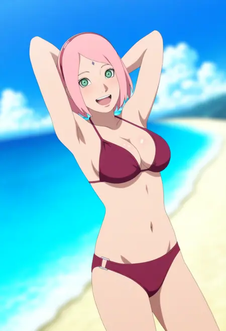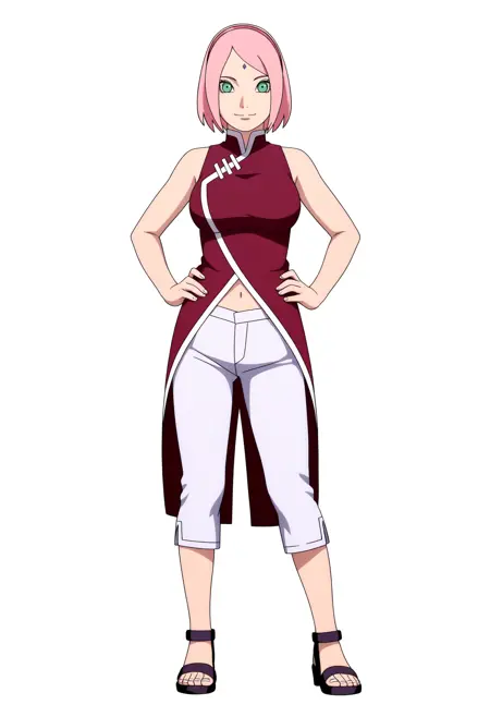 Basic prompts : 1girl, haruno sakura, pink hair, short hair, green eyes, forehead mark, hairband