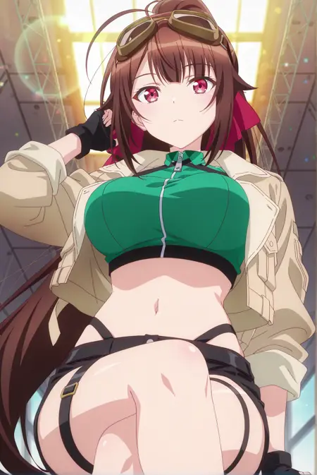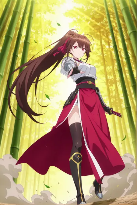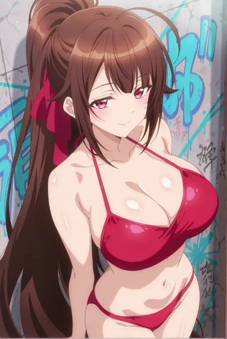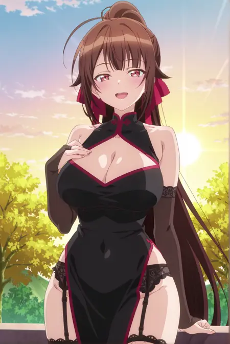 基础:amagi,1girl,红眼,棕发,马尾,天线辫,非常长的头发,发带