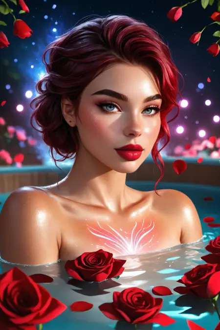 The model draws from a refined set of synthetic and stylized references - balancing polished glamor with ambient sci-fi glow. Reflective fabrics, iridescent sparkles, glowing makeup effects, and cyber-futuristic accessories render beautifully with minimal prompt effort.