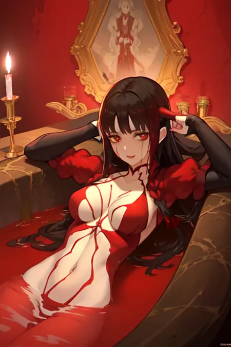 To prompt this character, enter "lora:Bloodessv3:strengthBloodless, bloody gown, horns, black gloves,". Additionally, to prompt her holding her parasol, prompt "holding parasol".