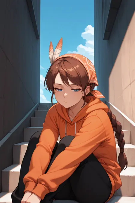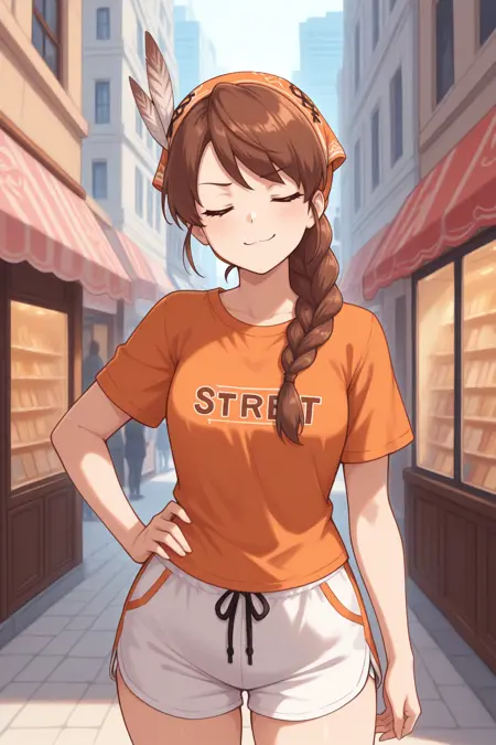 트리거 단어는 "ysynca"이며, "갈색 머리, 땋은 토끼꼬리, 긴 머리, 파란 눈"이 필수입니다.