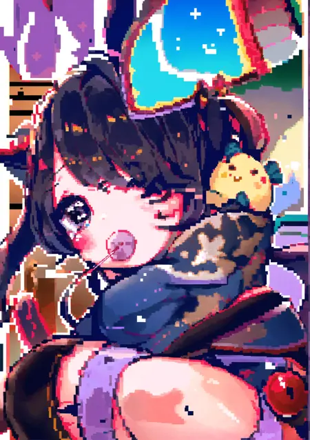 该模型是使用“ACertainty.ckpt”为底模训练而成,经过测试,使用时权重保持在0.85以上才会生成像素风格的效果,权重如果超过1.3则生成出的图像溢色问题与人物扭曲问题会较为严重。