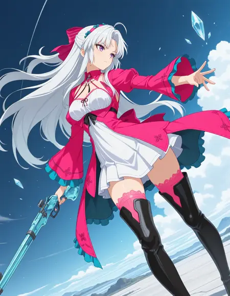 resonator outfit, pink thighhighs, thigh boots, black gloves