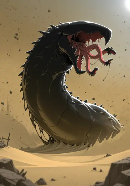 Auxiliary prompt: spikes, tentacles, brown body, eyeless, legless, limbless