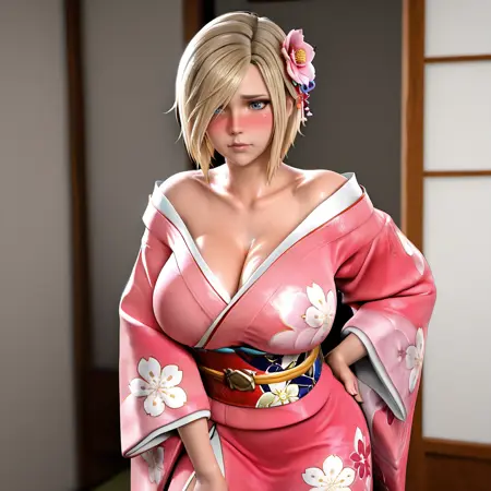 Trigger with boobs out: PowerGirlInjustice2BoobsOut, 1girl, breasts out, nipples, blonde hair, red cape, blue gloves, blue eyes, large breasts, short hair, white leotard, superhero, red belt, thighs, highleg leotard, clothing cutout, cowboy shot,3d