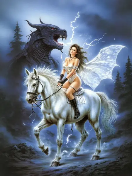 이 illustrations에 Luis Royo의 회화 스타일을 부여합니다.