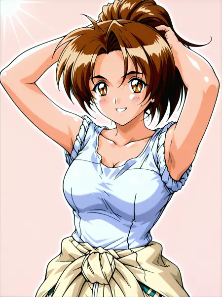 一応服装を分けられるようにしていますが、上手く行かない場合は服装のプロンプトをネガティブプロンプトに入れて、強弱を付けると上手く行くと思います。90年代タグを付けると勿論より良くなります。