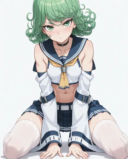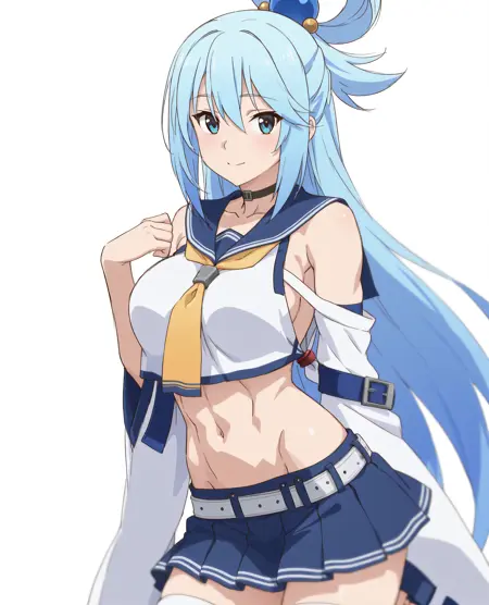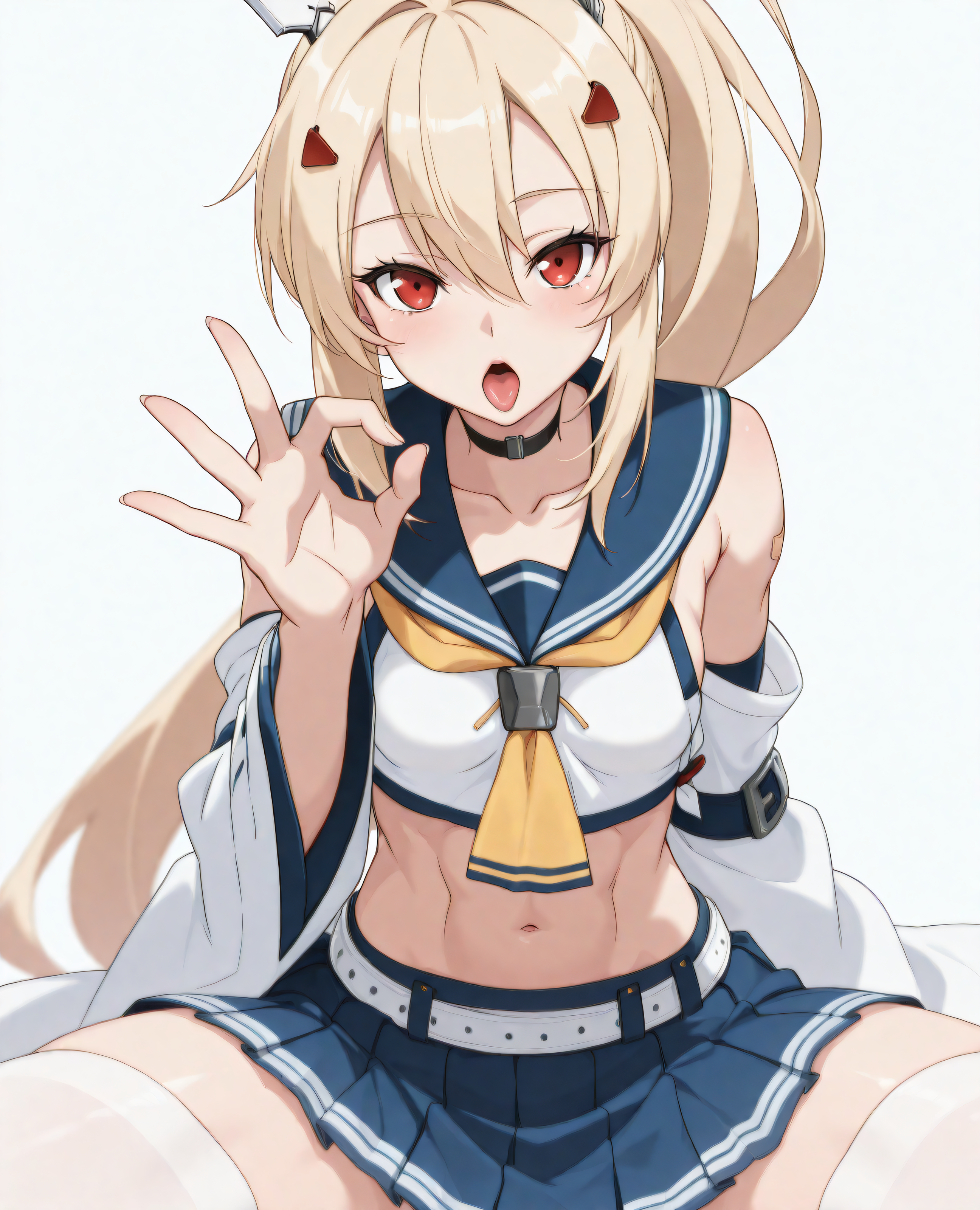 school uniform, choker, detached sleeves, sailor collar, wide sleeves, crop top,
