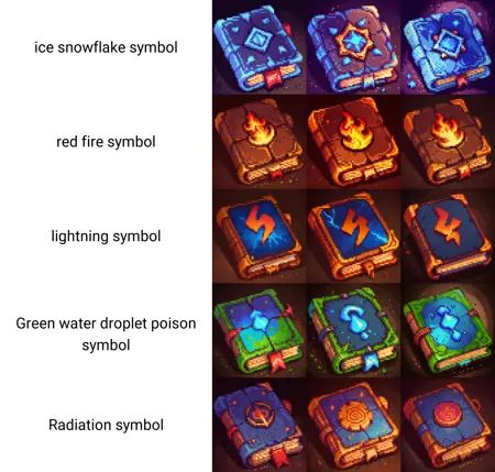 九个不同的Lora,角色和序列帧动画,冷兵器,枪械,植物,动物,书籍,药水瓶和等距建筑