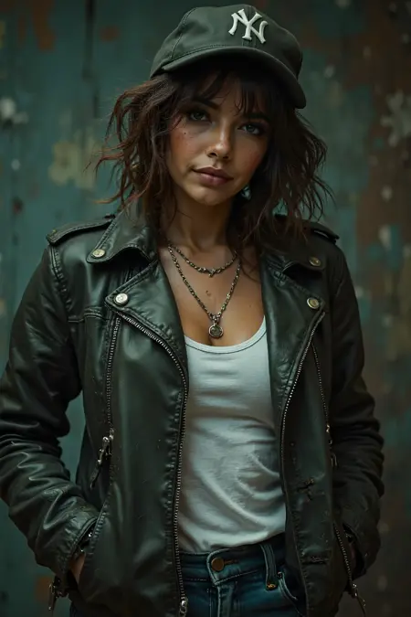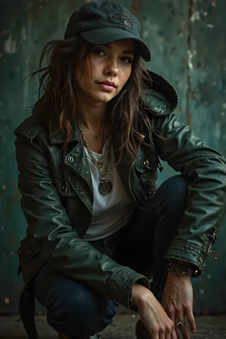 スタイルの雰囲気: アーバンなタムボーイ风格、ミニマリストのエッジ——土着色、シルバーのチェーン、擦りきれたブーツ、常に腰にカメラを下げて
