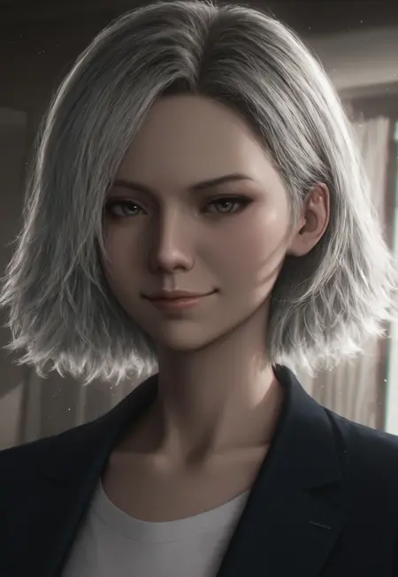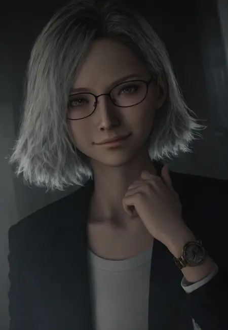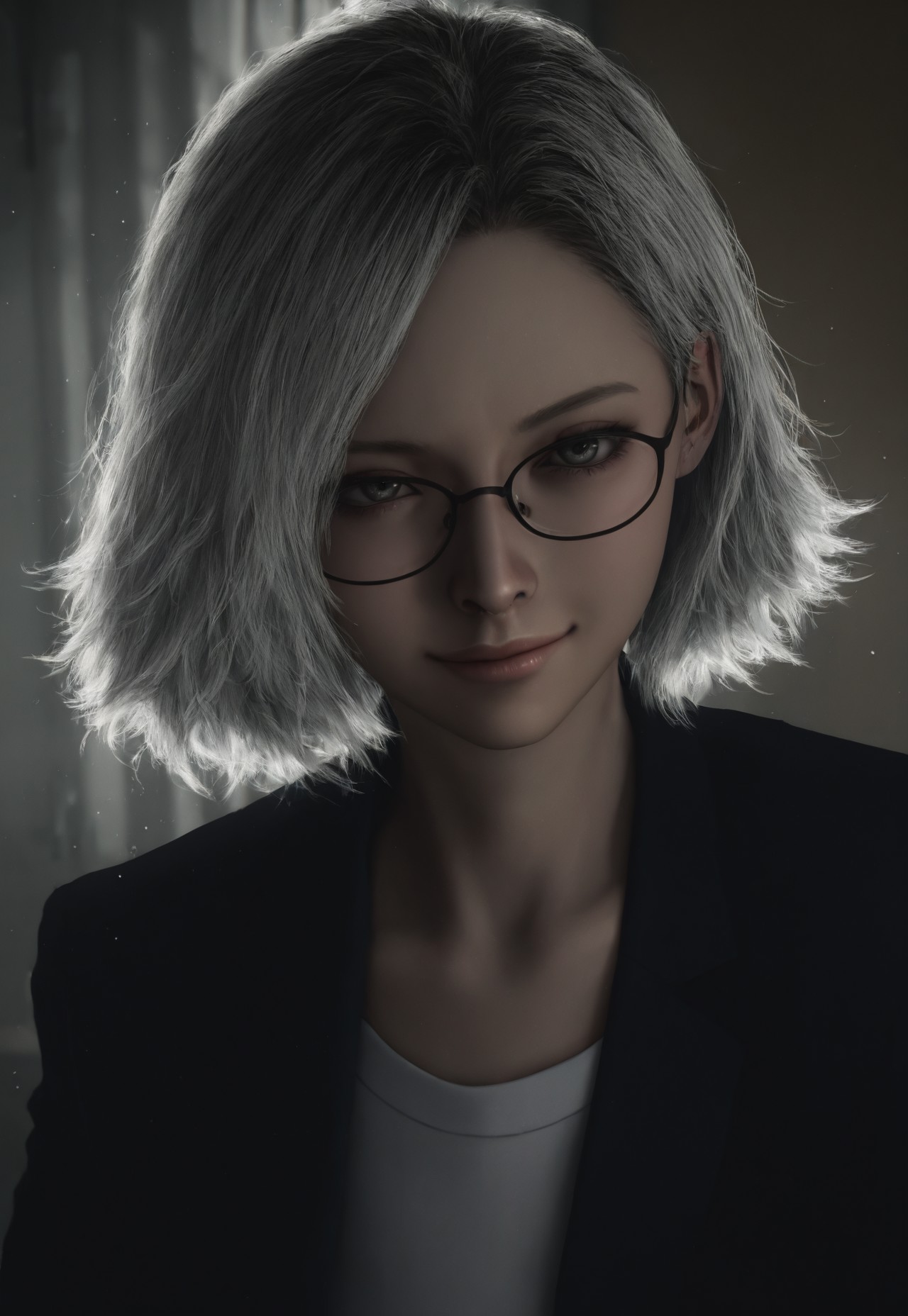 1girl, Grace Ashcroft, white hair, short hair, grey eyes, (glasses),