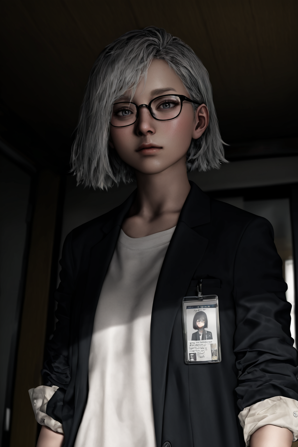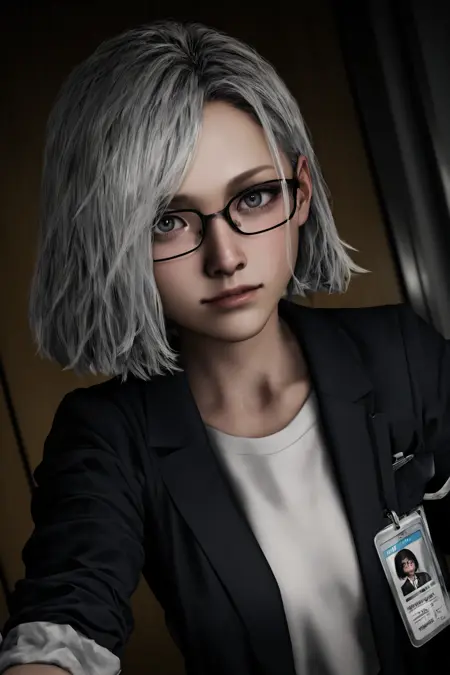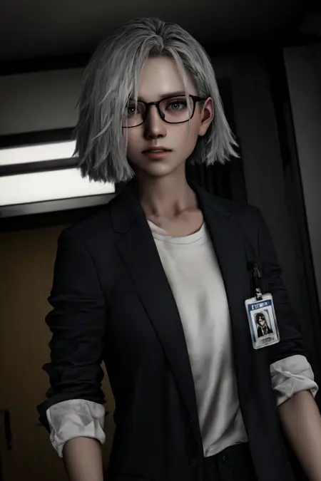 1girl, Grace Ashcroft, white hair, short hair, grey eyes, (glasses),
